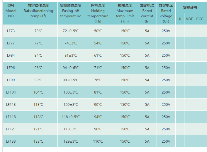 簡述: 方殼型溫度保險絲 溫度保險絲兩引腳間連接著一段易熔合金絲,特殊樹脂包覆著易熔合金絲,電流可以從一根引腳流通向另一根引腳,當溫度保險絲周圍溫度上升到它的動作溫度時,其易熔合金熔化并在表面張力作用下及特殊樹脂幫助作用下,收縮成球狀附在兩引腳末端。這樣,電路被永久切斷。