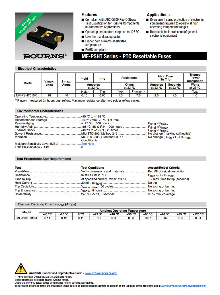 簡述: BOURNS 車規保險絲 MF-PSHT AEC-Q200認證