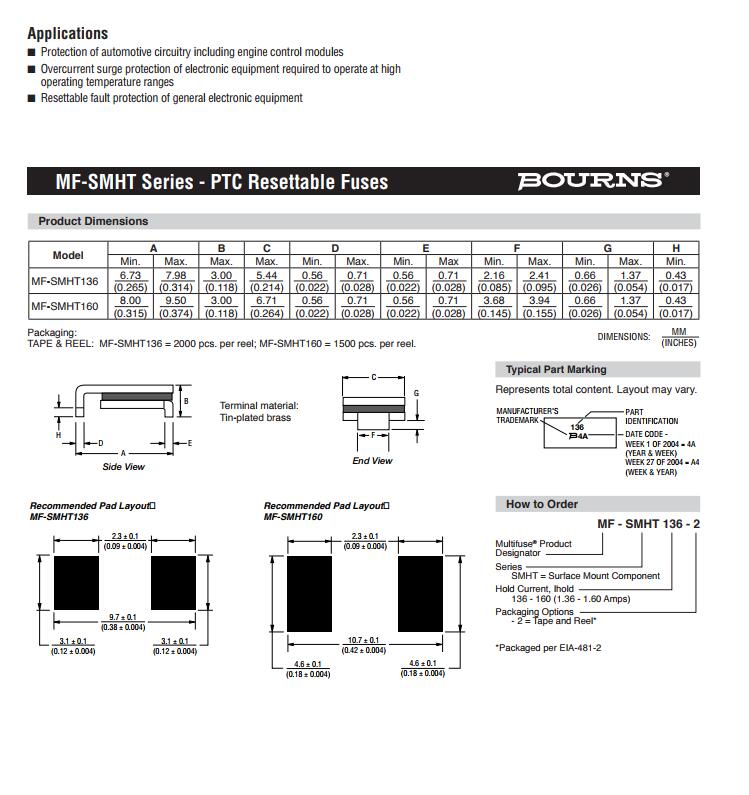 簡述: BOURNS 車規保險絲 MF-SMHT AEC-Q200認證 車規認證保險絲 車規級保險絲